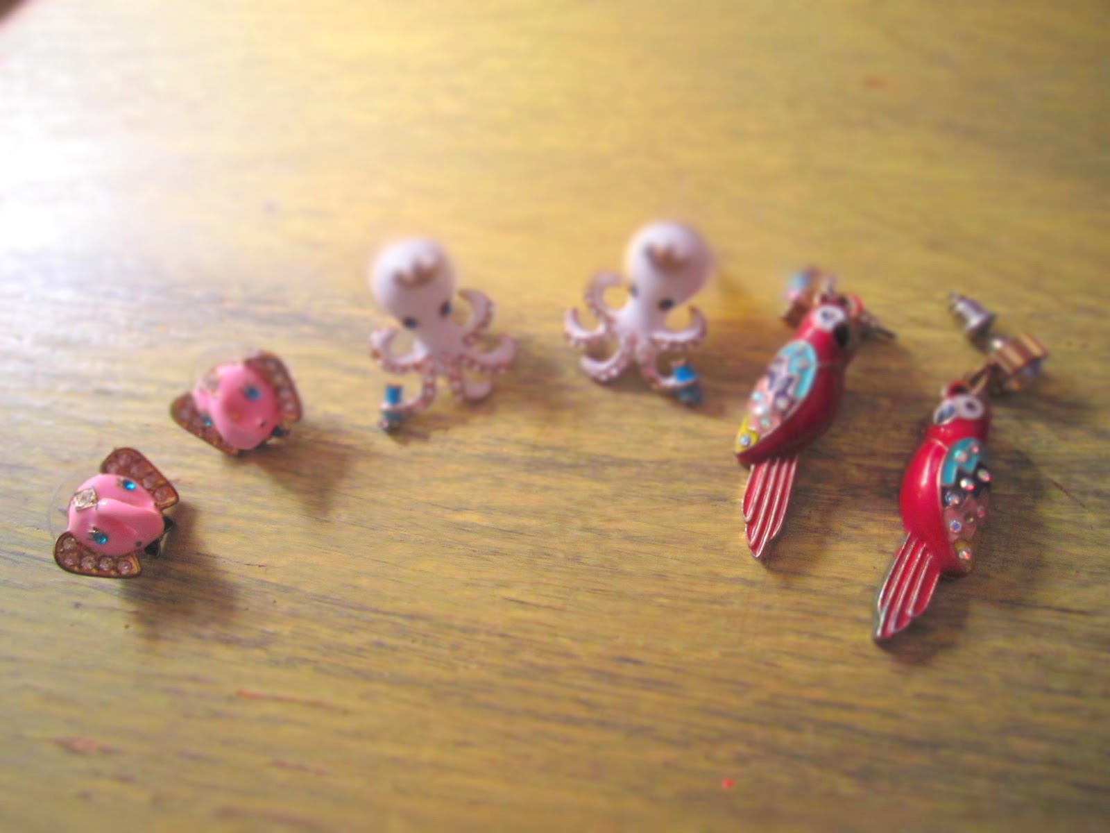 So, still talking about honeymoon accessories, I wore some really cute parrot earrings by Betsey Johnson. Sad to hear she's going out of business. She has some cute as heck jewelry, although I was never too into any of the clothing. I also have cute octopi/squid and elephant earrings by Betsey.